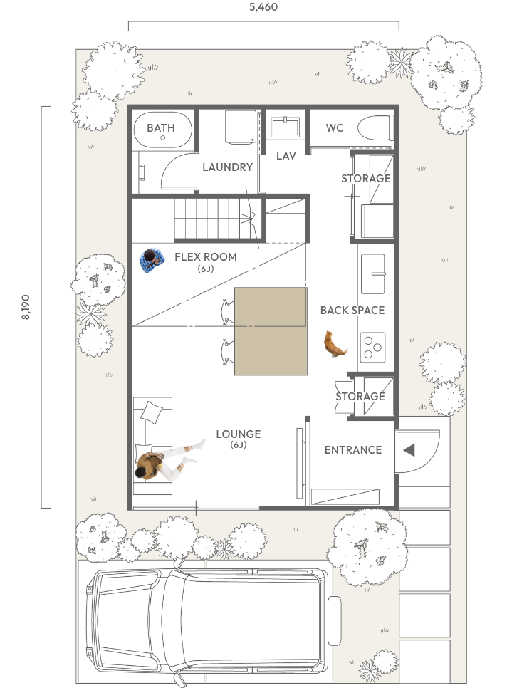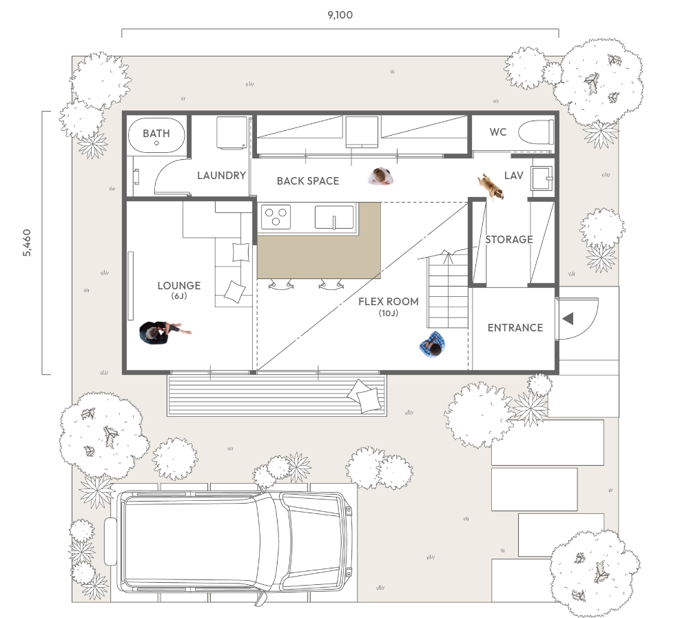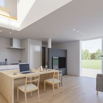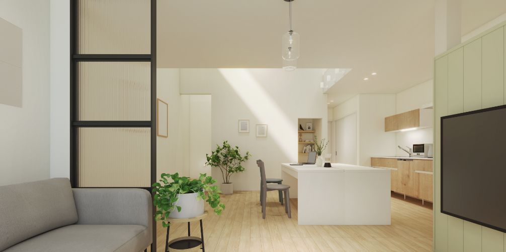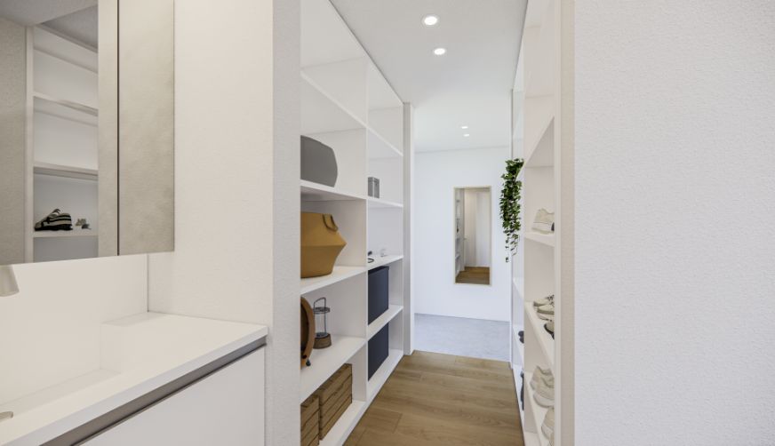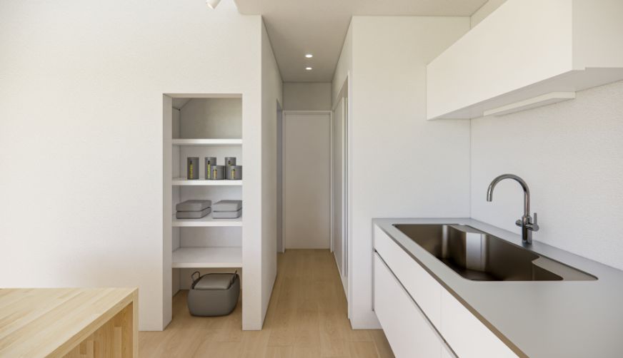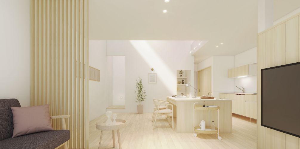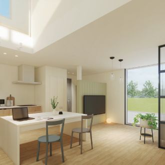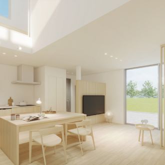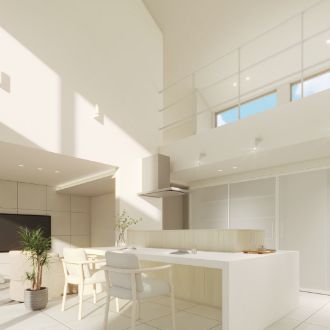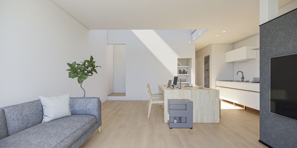 みんなのあたりまえではなく、自分らしく過ごせることがいちばんの心地よさだと考えました。コンパクトな動線設計と、マルチに使えるキッチン空間が家事の負担を減らし、自分らしい時間を大切にすることができます。効率良くやりたいことと、ゆっくり楽しみたいことのバランスを叶え、自分のペースで、自然体に暮らせる住まいです。
