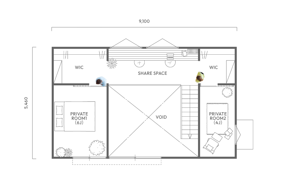 のびのびとした寝室は2部屋に分けられ、使い方に合わせてフレキシブルに変更可能。