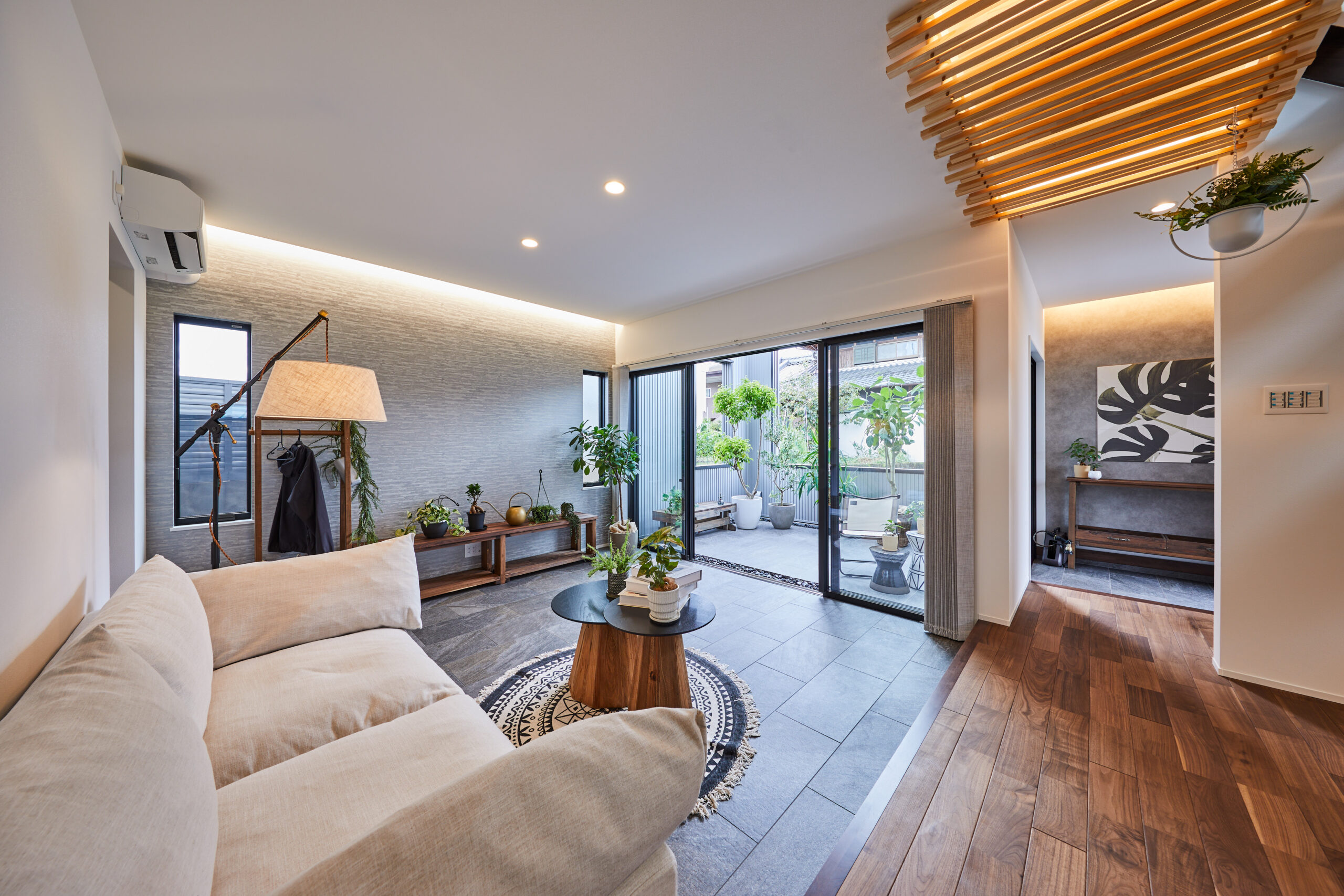 YUIE BOTANICALの最大の特徴は、「室内外をつなぐ、植物との調和空間」を実現し、住まいの中に自然を取り込み、暮らしと植物が一体となった心地よい空間を提供します。